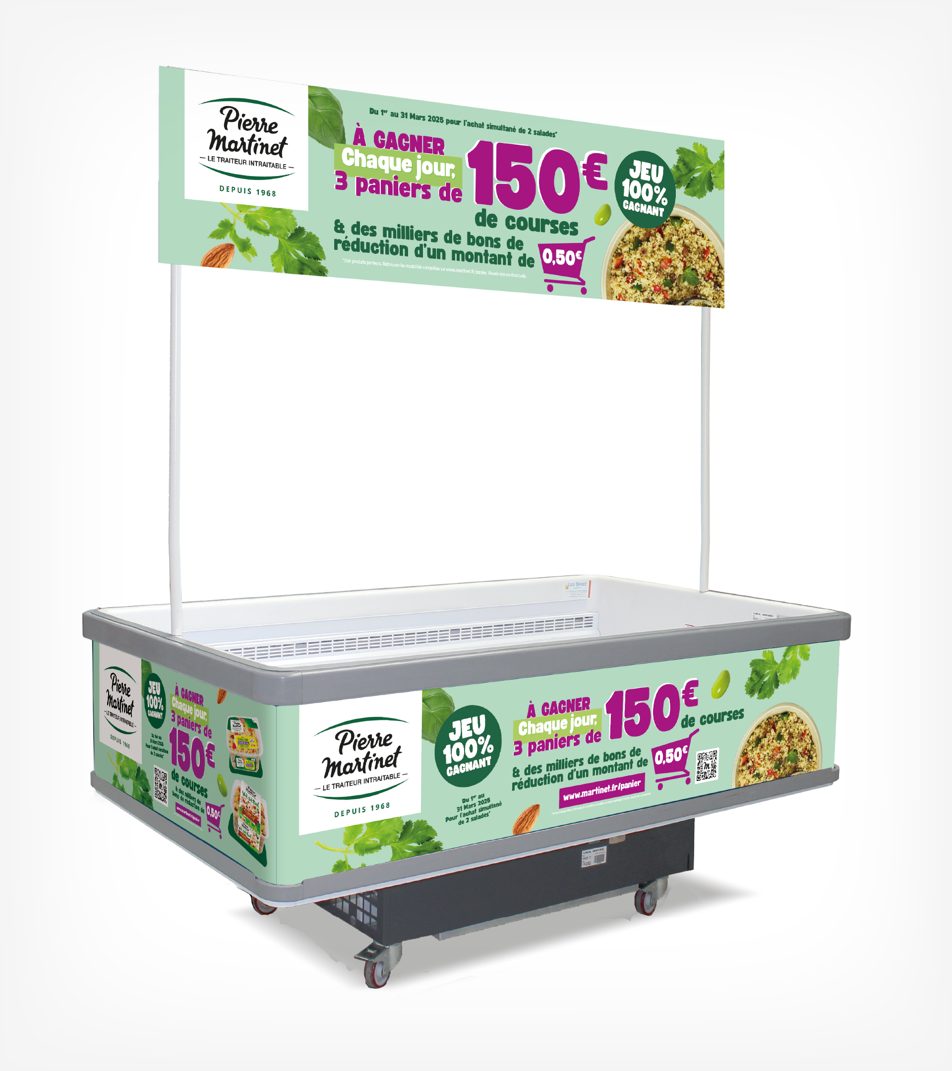 Bac réfrigéré, bons de réduction, kakemono, stop-rayon.